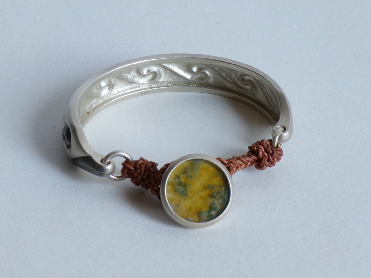 sv925, moss agate, round leather cord