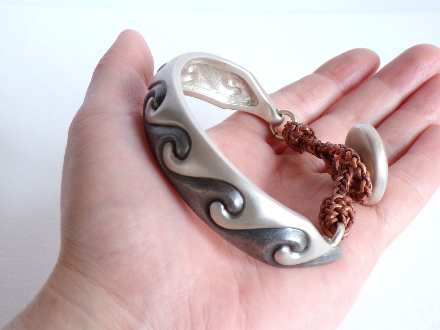 This bracelet features a pattern of flowing water.