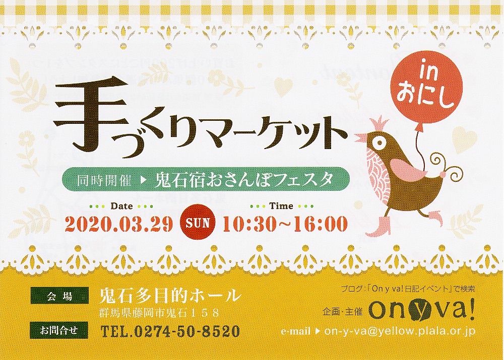 手作りマーケット in おにし(3/29 sun) 中止のお知らせ